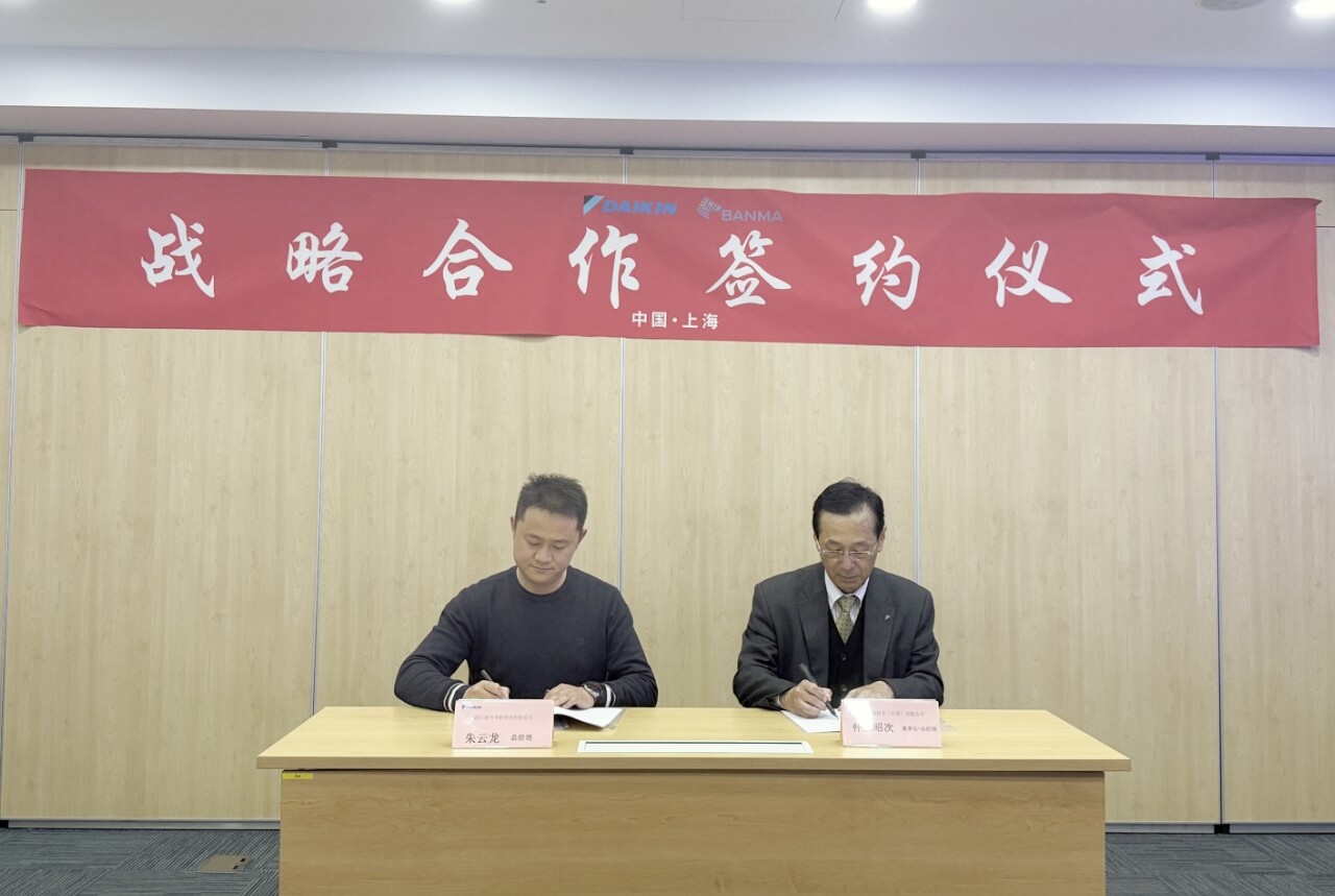2025年3月5日,大金(中国)投资有限公司董事兼副总经理、大金空调技术(中国)有限公司董事长兼总经理仲上昭次与浙江斑马节能科技有限公司总经理朱云龙,在大金上海企业总部共同签署了第五年的合作协议,继续携手前行。